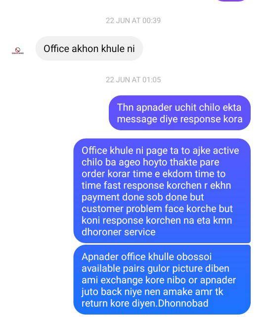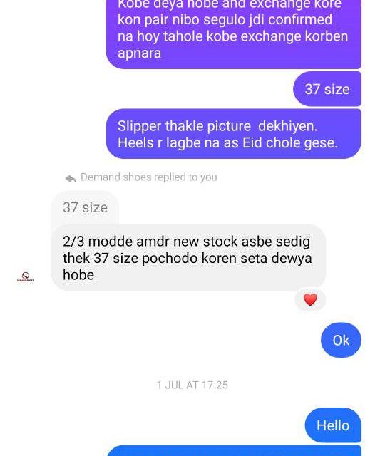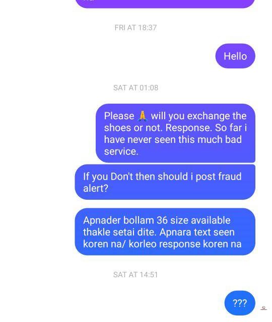 Don’t purchase from them, they are fraud.I ordered a pair of shoes from them but unfortunately the size did not fit.I paid the full amount. And share this matter with them.They said they will exchange the shoes after Eid Vacation. But aftet that they do not response to my text, if they do then they are messing up with their words and changing their statements. And now they have blocked my id from their page