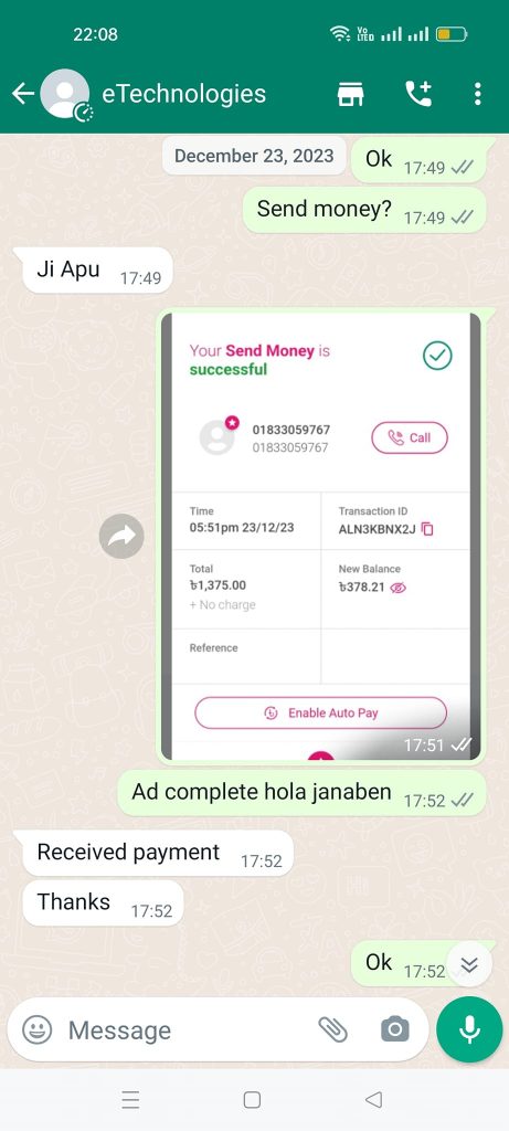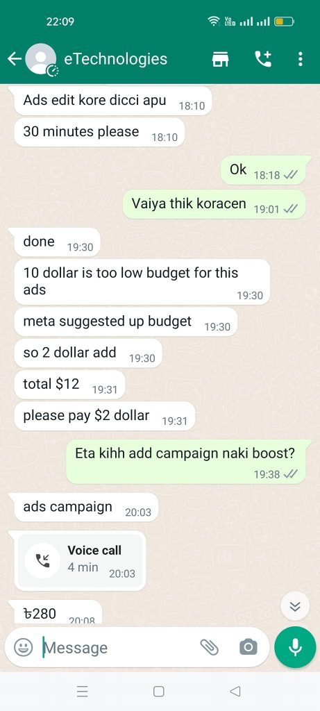পোস্ট boosting এর জন্য টোটাল ১৬৮০টাকা দিয়েছি আমি এই fraud and Batper marketing এজেন্সী কে।boosting অফ করে দিচ্ছে তারপর আবার টাকা রিটার্ন চাওয়াতে খারাপ কথা বইলা আবার deleted ও করে দিচ্ছে। এমন করে কত উদ্যোক্তা থেকে যে টাকা মেরে খাইসে আল্লাহ ভালো জানে। তাই আমি চাচ্ছি এই page তে কে রিপোর্ট মারেন এন্ড নস্ট করে দেন।