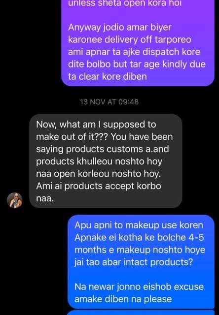 Remember this fraud?Je amar theke almost 1.5 lac takar order kore cancel kore diyechilen,karon tar mote 4 months e to loha o gole jai,shekhane makeup to obosshoi golbe. ‼️‼️