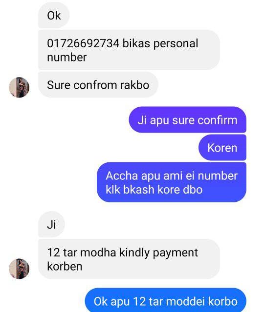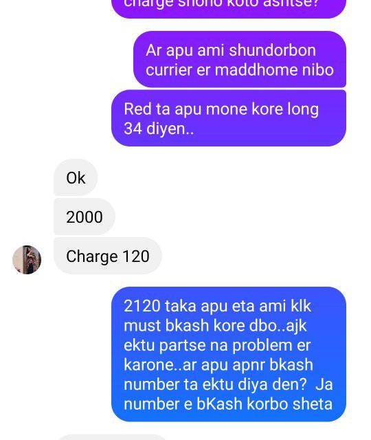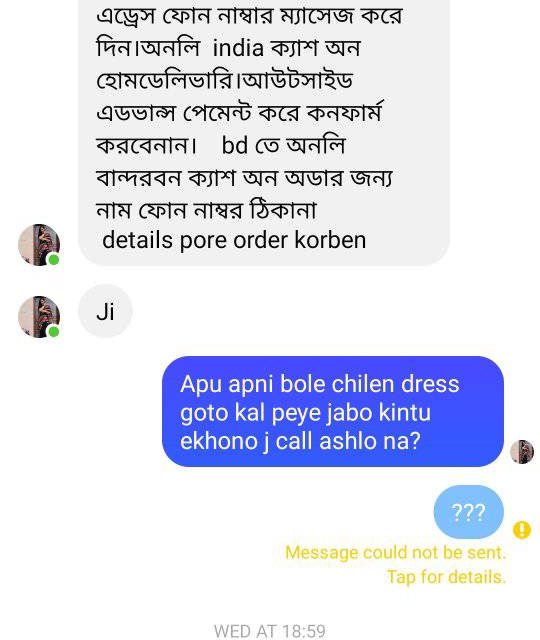 ndia to Bangladesh wholesaler.Eta ekta fake page..offer dekhiye taka full niya block kore de. Amr 2120 taka niya ar dress dei ni..Page er ekjon mohila r shthe kotha bolechilam mohila eto politely kotha bolechilo shuna mona hoyechilo shotty shotty oder onk customer.
