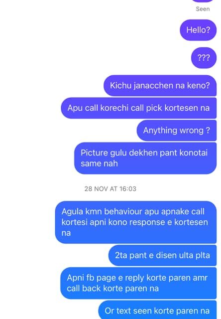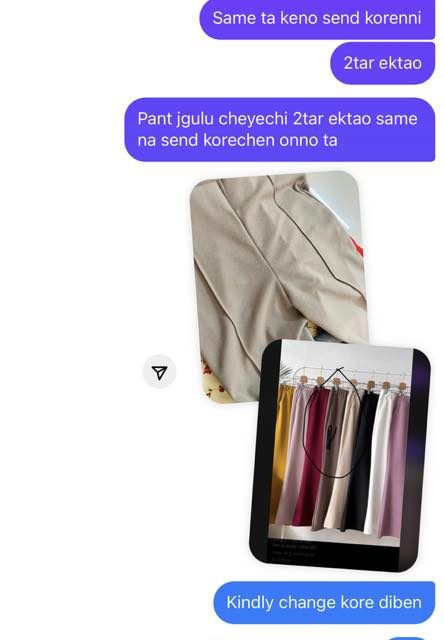 Ami 2ta pant order korechi shey tar iccha moto 2ta pant send kore dise. Text deyar por theke Kono response nai amake ignore e fele rakhse call e block kore dise. Ashob fraud der theke dure thakben shobai.