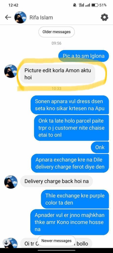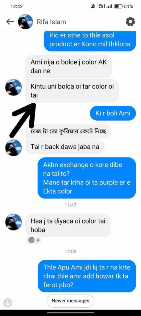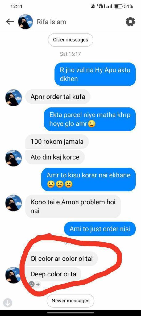নিলে ওটাই নিতে হবে আর তারা কাস্টমারের ১৫০ টাকা ডেলিভারি চার্জ ও ফেরত দিবেনা। কিন্তু কাস্টমার আমার সাথে ঝামেলা করে তখন আমি এডমিন আপুকে বলি আমার প্রথম কাস্টমারের সাথেই এমন হলো আর আমি ১ টাকাও ইনকাম করতে পারলাম না আমি কাজ করবো না। আপনি আমার এড ফি-এর অর্ধেক টাকা ফেরত দেন।