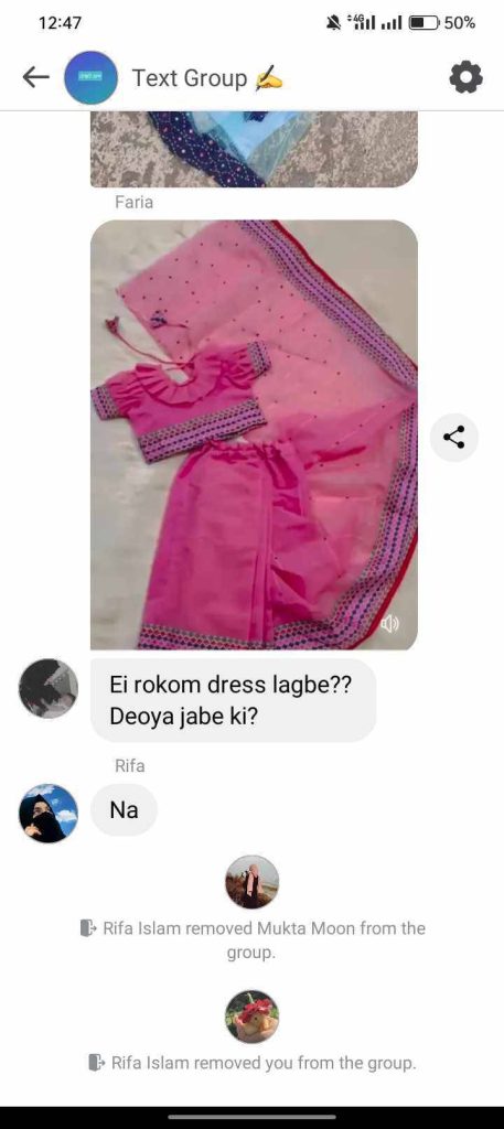তখন সে সাথে সাথে আমাকে গ্রুপ থেকে বের করে দেয় এবং অনেক কথা শুনায়ে ব্লক করে দেয়।